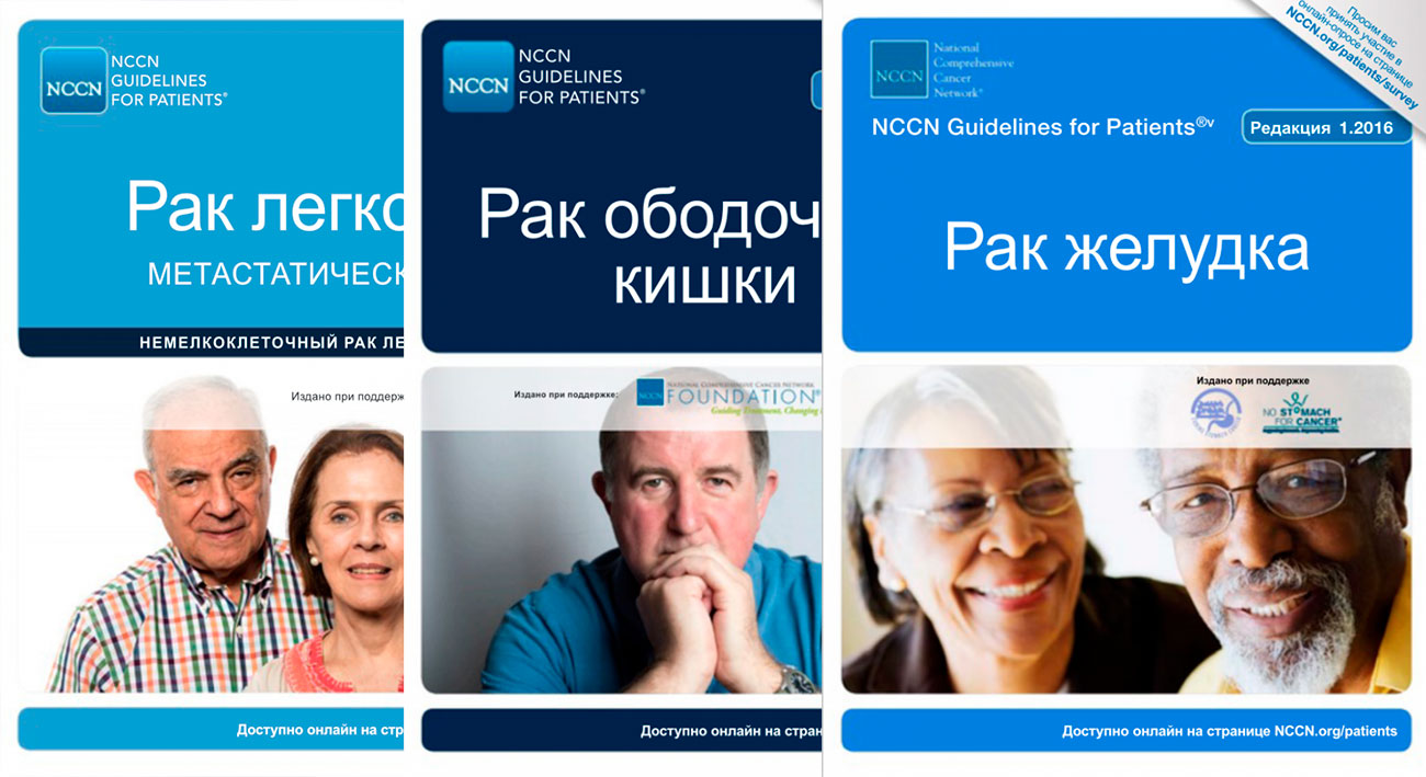 Руководства для онкобольных уже в течение 20 лет выпускает некоммерческая организация National Comprehensive Cancer Network (NCCN), объединяющая 28 онкоцентров США. Тексты гайдлайнов переведены на 18 языков.